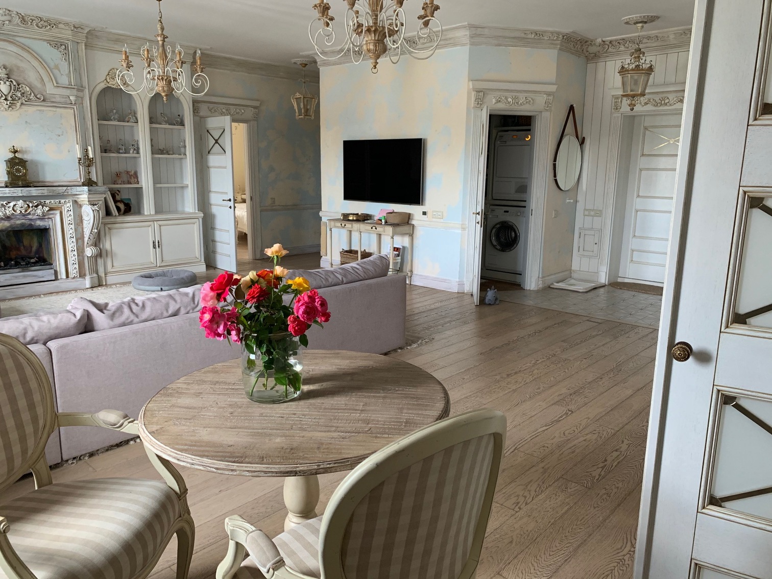 Spacious hall / kitchen with dining area / living room / two bedrooms / two bathrooms / three balconies. Designer renovation using quality materials, Italian plaster, underfloor heating, designer lighting. Built-in kitchen with built-in appliances from world manufacturers. three A... ( 160 m2)