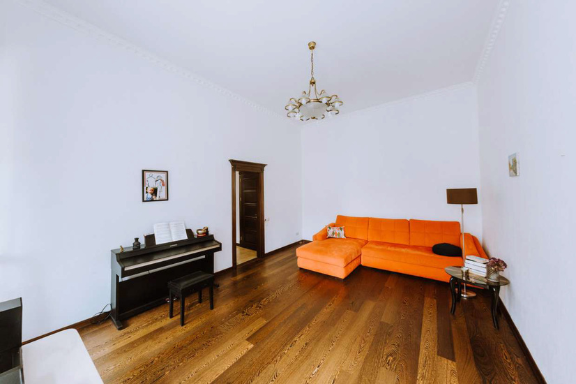Four-room flat located within 100m distance to the embassies of Italy, France, Hungary, Norway and Slovakia. The flat of some 126 sq.m comprises 4 rooms + kitchen + 2 bathrooms + 2 balconies + clean big entrance hall All windows are facing the yards, means flat is - though located in the very centre of Kyiv - very quiteFlat located on 3,5th floor in a 5-floor building constructed in the beginning of 20th century (Tsarskiy Dom), means high ceilings of up to 4m.Hot water is provided via boiler heated with electricityGeneral District Heating, whereas both bathrooms + kitchen have an electric floor heating additionally.All rooms equipped with air-condition which might be used in winter for heating as well if needed.Flat can be rented with or without furniture. Payment non-cash only to preferably to an EUR account in Germany and... ( 128 m2)