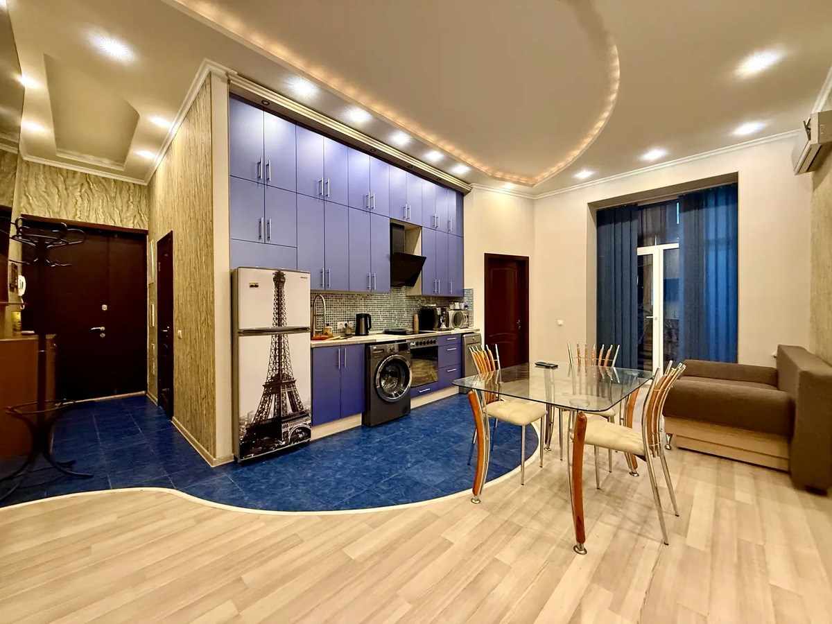 Two level furnished apartment in light classical style located in the building without elevator. First level consists of a living room combined with a kitchen... ( 180 m2)