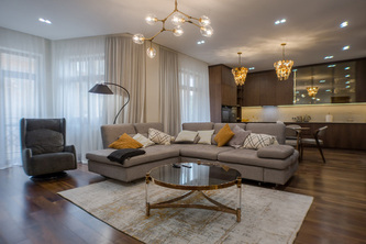 Three-room apartment in the heart of Kyiv. A spacious open floor plan with high ceilings, oak floors, Italian marble. Two stylish bedrooms... ( 125 m2)