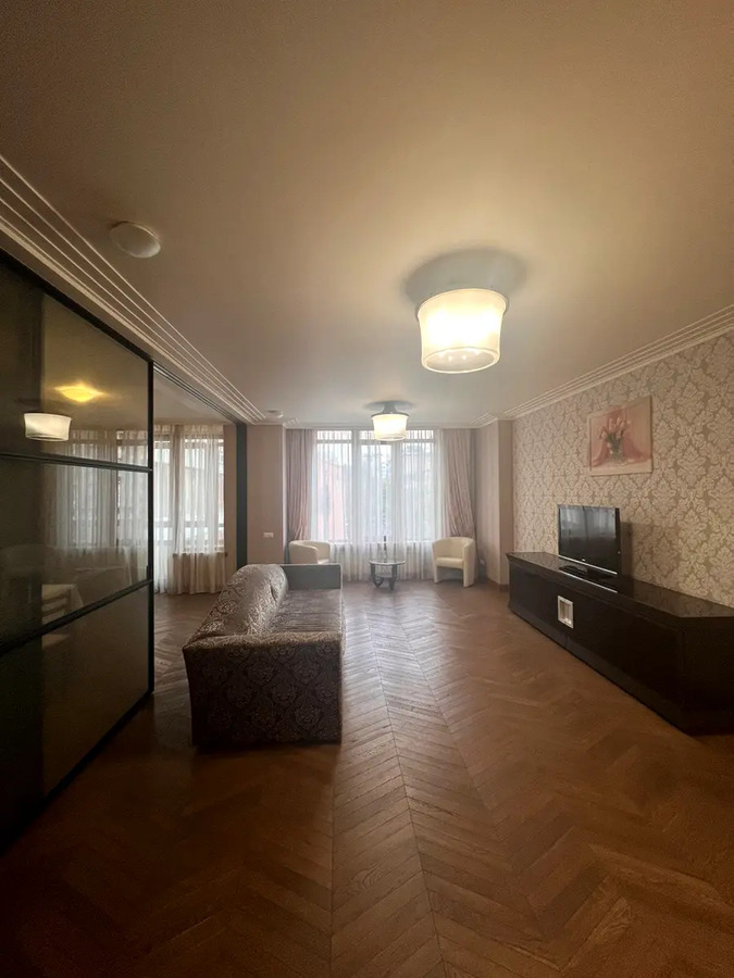 A completely new and stylish apartment in the center of Kyiv. Three room apartment on the fourth floor of a building with an elevator. The apartment consists of a kitchen-living room, two bedrooms and two separate W... ( 65 m2)